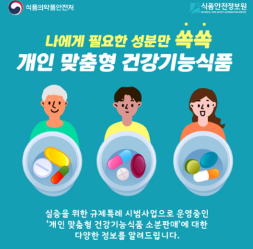 이번 실증을 통해 개인 맞춤형 건강기능식품의 품질 및 안전성, 만족도, 정보제공, 준법성 등 다양한 항목을 검증합니다. (20.7월~, 2년간)