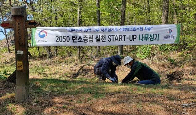 서부지방산림청은 2050년까지 국내·외에 30억 그루의 나무를 심어 탄소저장고를 확대한다는 산림청의 목표에 발맞춰 4월 30일까지 매주 1회씩 총 3회에 걸쳐 ‘2050 탄소중립 실천 “start-up” 나무심기 행사를 추진하고 있다.