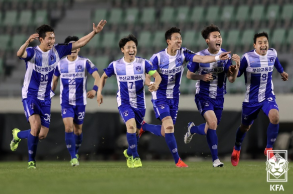 K3리그 부산교통공사축구단이 프로팀을 상대로 화끈한 뒷심을 선보였다. 모두가 어려울 것이라 예상했지만, 부산교통공사는 그 예상을 뒤집고 자이언트 킬링을 선보였다. 김귀화 감독이 이끄는 부산교통공사는 14일 구덕운동장에서 열린 K리그1 광주FC와의 2021 하나은행 FA CUP 3라운드에서 승부차기까지 가는 접전 끝에 승리했다.