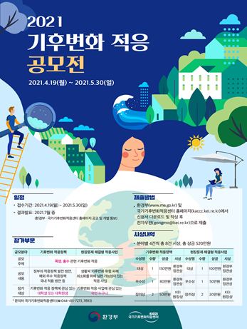 이번 공모전의 총 상금은 520만 원이며, 기후위기 중 폭염과 홍수를 대상으로 '기후변화 적응정책'과 '현장문제 해결형 기후변화 적응사업' 발굴을 주제로 열린다.