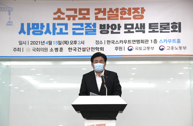 소병훈 의원은 인사말에서 ”건설현장은 안전모 쓰는 데 20년 걸렸고, 안전대 착용하는데 20년 걸렸다고 말할 정도로 안전이 취약하다“며, ”소규모 건설현장의 근본적인 사고 근절을 위해서는 강력한 법 집행만으로는 한계가 존재한다. 사고 발생의 근본적인 원인을 파악하여, 실효성 있는 대책을 만들어야 한다“고 강조했다.