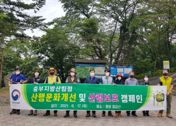 17일, 청양 칠갑산에서 열린 이날 캠페인은 칠갑산에 버려진 각종 쓰레기와 산림 내 폐기물을 수거함으로써 지역주민과 등산객을 대상으로 산림보호 활동 동참 등 자발적인 ‘쓰담 달리기’ 활동을 유도하고, 더불어 코로나19 방역수칙 준수 등 올바른 산행문화 홍보도 동시에 진행했다.