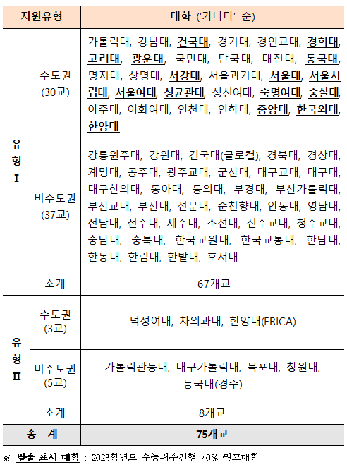 교육부는 지난 5월 중간평가를 통해 기존 지원대학 73개의 계속 지원을 확정하였으며,중간평가에서 탈락한 2개 대학과 신규 신청 4개 대학을 대상으로 이번 달 추가선정평가를 실시하여 2개교를 추가로 선발하면서 2021년 사업을 수행할 75개 지원대학을 모두 선정하였다.