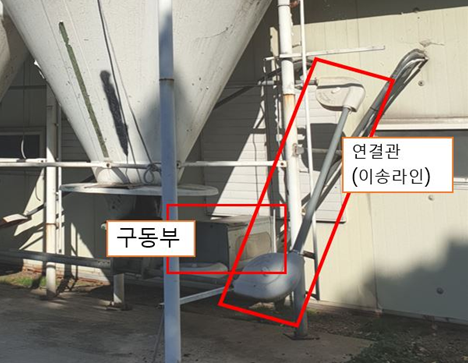 사료저장고의 구동부와 연결관(이송라인)은 빗물이 새 들어갈 틈과 구멍은 없는지 꼼꼼히 확인하고 파손됐다면 교체․보수해야 한다.