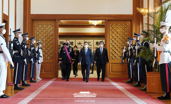 문 대통령은 서훈식에 함께한 아퀼리노 인도태평양 사령관에게 “늦었지만 인도태평양 사령관 취임을 축하하며, 인도태평양 지역의 평화와 안정을 위해 많은 역할을 해줄 것을 당부한다”고 말했다.