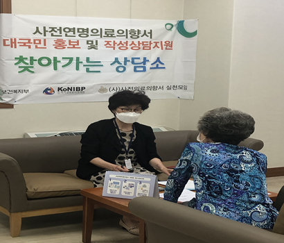 “찾아가는 상담소”등에서 근무 중인 홍○○ 상담사(75세, 사전연명의료의향서 실천모임 소속)는 “이 일로 삶의 활기와 성취감을 느낀다. 평생 교직에 몸 담아 왔었는데, 이제는 이 일을 통해 새로운 제2의 삶을 살고 있다. 이 사업이 전국으로 확대되길 바라며, 앞으로도 어르신들이 삶의 마지막 순간을 존엄하게 결정하실 수 있도록 돕고 싶다.”고 그 소감과 함께 바램을 밝히기도 했다.