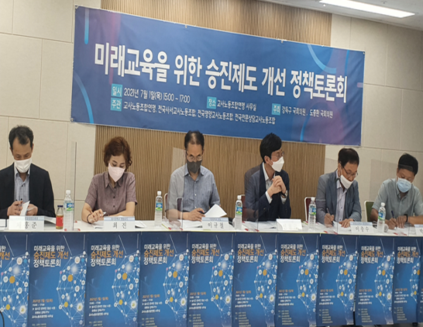 주제발표를 맡은 홍섭근 교육정책디자인연구소 연구위원은 먼저 비교과 교원승진에 대한 필요성과 정책 방향에 대해 역설했다. 그러면서 현재 영양교사·사서교사·전문상담교사는 승진이 될 수 없는 구조이며, 이는 차별적 요소가 다분할 뿐만 아니라 헌법적 가치와 정신에 부합하지 않는다고 주장하였다. 또한, 이제라도 학교에서 소수자에 대한 차별 없이 관련법과 제도를 정비하여 시대정신에 부합하는 포용력을 갖추어야 한다고 강조했다.