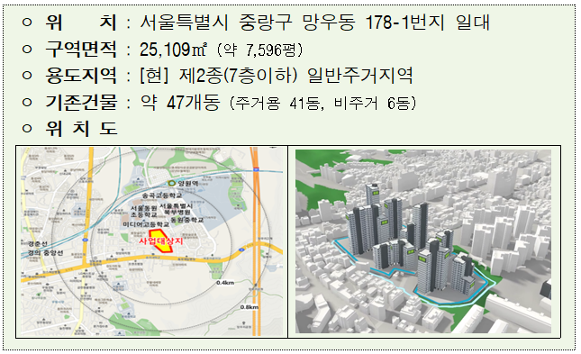 현재, LH는 신설1구역을 포함한 공공재개발 후보지 12곳과 망우1구역을 포함한 공공재건축 후보지 2곳에서 사업을 진행 중이며, 이곳에서 총 1.62만호의 주택을 공급할 계획이다.