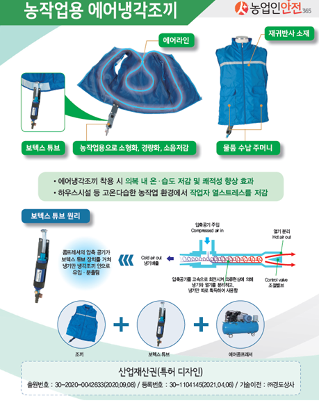 보텍스 튜브 장치는 화학적 반응 없이 차가운 공기를 만들어 낼 수 있어 농작업 특성에 따라 다양한 형태의 에어 냉각조끼를 만들 수 있는 장점이 있다.