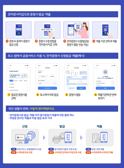 행정안전부는 토스 앱에서 전자증명서를 쉽게 이용할 수 있도록 8월 17일부터 서비스를 제공한다고 밝혔다.
