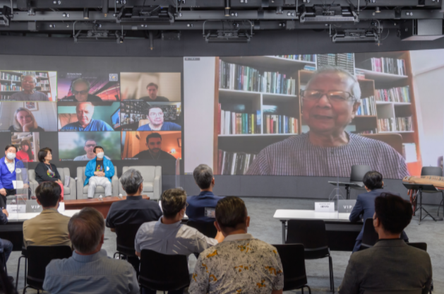 특히, 최근 도쿄 올림픽 월계관상 수상으로 우리나라에도 잘 알려진 노벨 평화상 수상자인 무함마드 유누스 교수가 행사 당일 직접 줌 라이브를 통해 창립 축하 메시지를 전해 더욱 눈길을 끌었다.
