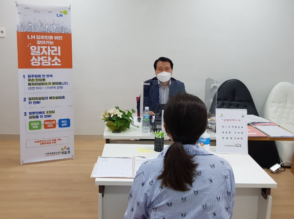 ‘찾아가는 일자리상담 및 취업연계서비스’는 일자리 전문 상담기관인 ‘사회적 협동조합 내일로’와 함께 진행하고 있으며, 일자리 전문 상담사들이 LH임대주택단지를 방문해 입주민을 대상으로 취업상담, 직업훈련, 복지서비스 등 다양한 정보를 제공하는 사업이다.