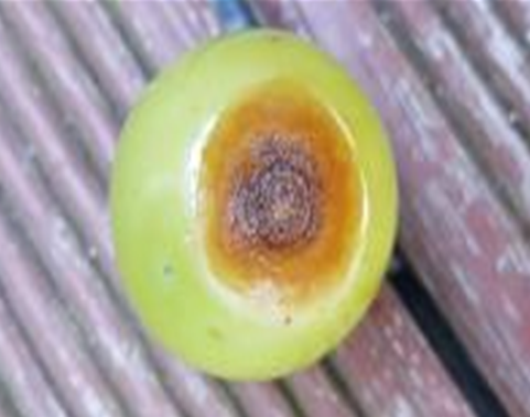 그을음점무늬병은 주로 포도가 익어가는 성숙기에 과실 표면에서 공기 통로 역할을 하는 ‘과점’을 중심으로 발생하는 병해로 과실 표면에 파리똥 같은 검정 반점이 형성된다.