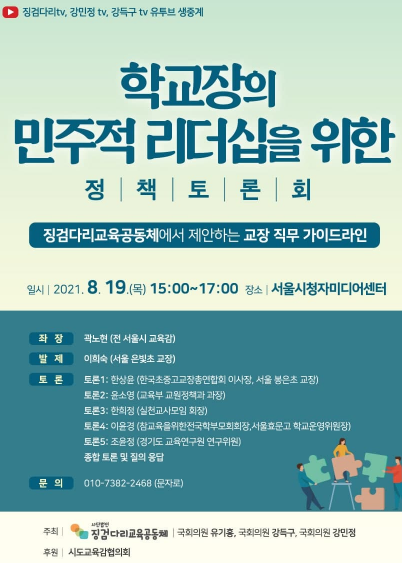 이번 토론회는 교육자이면서 학교의 관리자인 학교장의 민주적 리더십에 대해 논의한다. 또한 학교장이 민주적 리더십을 펼치기 위한 직무 가이드라인 정책 수립을 위해 교육 관계자들의 토론이 이어진다.