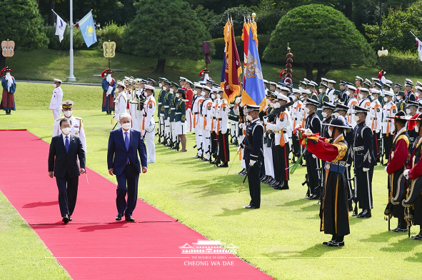 이날 청와대 주변에는 토카예프 대통령의 방한을 반기는 카자흐스탄 국기가 곳곳에 게양되었다. 또한 사열단으로 가는 길목에 군악대, 육군, 해군, 공군, 전통의장대, 전통군악대(취타대)가 순서대로 도열해 토카예프 대통령과 카자흐스탄 측 손님을 예우로 맞았다.