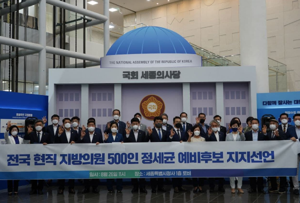 전국 현직 광역 및 기초 지방의원 539명은 「전국 현직 지방의원 500인 정세균 대선 경선 후보 지지선언」에 뜻을 모으고, 정세균 예비후보의 당선을 위해 최선을 다할 것을 표명했다.