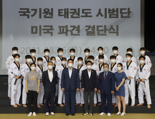 이동섭 국기원장은 26일 오후 2시 30분 중앙수련장에서 열린 결단식에서 “시범단은 코로나19라는 힘든 여건 속에서도 훈련에 매진하며, 언제 어디서든 완성도 높은 시범을 선보이기 위해 노력했다”며 “이번 미국 파견은 캘리포니아주 태권도의 날 제정을 기념하는 중요한 상징성을 지닌 만큼 국기원과 태권도를 대표한다는 자부심을 갖고 끝까지 최선을 다해주기를 바란다”고 당부했다.