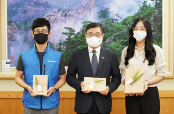 이날 산림청장을 비롯해 산림청 공무원 노동조합 위원장, 청청티에프(TF) 단장이 모여 추천 도서 ‘산림법강의(이규태)’, ‘한배를 탄 지구인을 위한 가이드(크리스티아나 피게레스 외)’, ‘숲속의 자본주의자(박혜윤)’와 편지를 전달받았으며 조직 내 다양한 의견을 대표하는 직원들과 열린 소통의 시간을 가졌다.