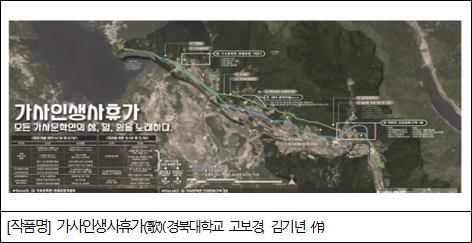 먼저, 제19회 한국농촌계획대전은 ‘다양한 가치의 농촌 재생’을 주제로 하였으며, 농촌 마을 발전 방향에 대한 참신한 아이디어를 담아낸 경북대학교(고보경, 김기년)의 “가사인생사휴가(歌)”가 대상으로 선정되었다.