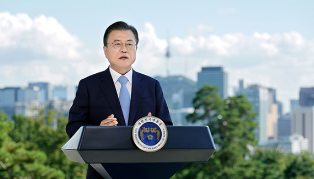 문 대통령은 “탄소중립 목표는 배터리와 수소 경제 분야 등에서 세계적인 경쟁력을 가진 우리 기업들이 도약하고 새로운 일자리를 많이 만들 수 있는 기회이기도 하다”며 “정부는 탄소국경세를 비롯한 새로운 국제질서에 우리 기업이 선제적으로 대응할 수 있도록 적극 지원할 것”이라고 밝혔다.