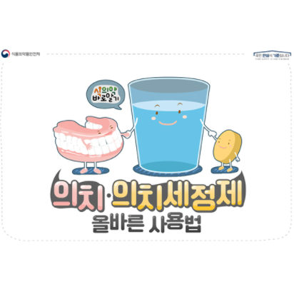 - 의치 세정제는 반드시 의약외품으로 허가받은 제품을 사용해야 합니다.