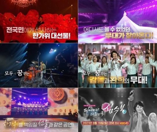 한편 KBS ‘2021 한가위 대기획 '피어나라 대한민국, 심수봉'’은 26년만의 TV 단독쇼인만큼 심수봉과 KBS가 코로나를 이겨내고 있는 국민들을 위해 준비한 특별하고도 잊지 못할 한가위 선물로 기대를 높이고 있다. 본 공연은 9월 19일 일요일 저녁 8시 KBS2에 방송된다.
