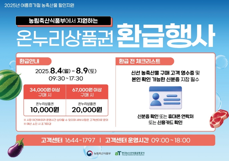 이번 행사는 농림축산식품부가 주관하며, 행사 참여 시장에서 국산 신선 농축산물을 구매한 소비자에게 최대 2만 원 상당의 온누리상품권을 현장에서 환급하는 방식으로 운영된다.