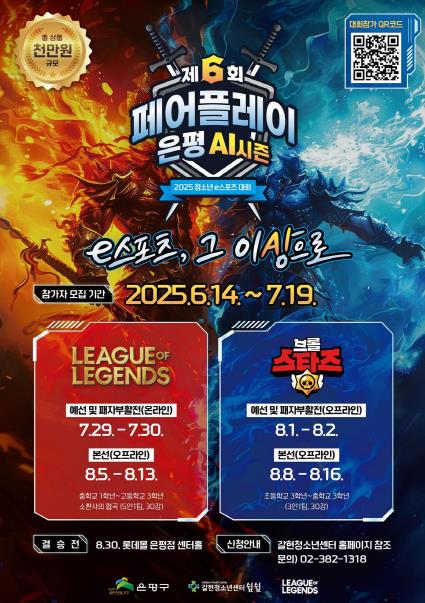 올해로 6회째를 맞은 ‘은평구 청소년 e-스포츠 대회-페어플레이 은평’은 페어플레이를 주제로 공정한 경쟁과 올바른 e-스포츠 문화를 만들어 나가기 위한 행사다. 올해부터는 인공지능(AI)을 활용한 전략기획서, 페어플레이 문구 작성 등 다양한 콘텐츠를 통해 청소년 디지털 역량 개발에 도움을 주고자 한다.