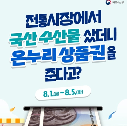 전국 101개 전통시장에서 국산 수산물을 구매하시면 1인당 최대 2만 원까지 온누리상품권을 드립니다.