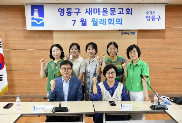 이날 회의는 금번 7월 1일자로 취임한 장수석 영통구청장이 새마을문고 회장단을 처음 공식적으로 만나는 뜻깊은 자리로, 새마을문고회 하반기 활동에 대해서 논하고 문고 회원간의 소통과 화합을 다지는 시간이 마련됐다. 또한, ▲수원특례시 행정전화번호 변경 ▲선경도서관 ⌜수원마을학⌟ ▲국민소통 플랫폼 ‘모두의 광장’ 등 다양한 시·구정 홍보사항을 공유했다.