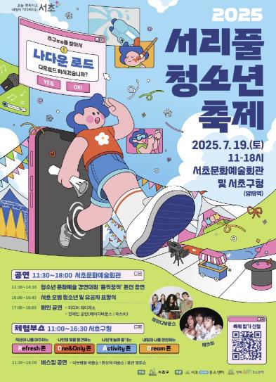 전성수 서초구청장은 “이번 축제가 청소년들이 가진 개성과 스타일을 맘껏 표현하는 무대가 되길 바란다”며, “앞으로도 미래의 주인공인 청소년들이 스스로의 삶을 주도적으로 찾아갈 수 있는 다양한 참여 기회를 확대해 나가겠다”고 전했다.
