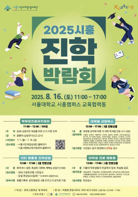 시흥시인재양성재단 관계자는 “이번 박람회는 입시 준비에 실질적인 도움이 될 뿐 아니라, 학생과 학부모가 함께 교육적 방향을 모색하는 뜻깊은 자리가 될 것”이라며 “앞으로도 공정한 교육 기회 제공과 체계적인 진학 지원을 통해 지역 청소년의 성장을 적극 응원하겠다”라고 밝혔다.