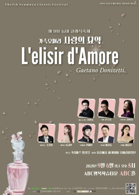 올해로 9회째를 맞는 늠내클래식 축제는 매년 수준 높은 클래식 음악회를 선보이며 지역 문화예술 발전에 기여해 왔다. 올해는 지난해에 이어 정통 오페라 ‘사랑의 묘약’ 공연을 통해, 시민들과 함께 만드는 더 의미 있는 무대를 선보일 예정이다.
