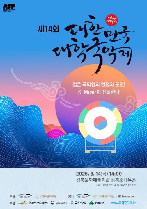 ‘제14회 대한민국 대한국악제는’ (사)문화문, 강북문화재단, ㈜JSK Production이 주최·주관하며, 한국문화예술위원회, 국립국악원, 국악방송, 강북구가 후원한다. 특히 이번 대회를 강북구에 유치한 것은 지역이 중심이 되어 국악 인재를 격려하고, 우수 국악인 발굴·육성에 힘을 보탠다는 점에서 의미가 크다.