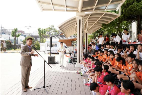 재동초, 교동초, 운현초 3개 초등학교가 방과후축구 수업의 결실을 공유하고 소통과 협력을 도모하기 위해 마련된 자리였다. ‘공 하나로 이어지는 세 학교 이야기’라는 표어 아래, 학생들은 또래 친구들과 순발력 게임, 축구공 릴레이, 축구경기 등에 참여해 신나게 뛰어놀았다.