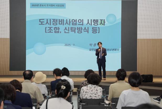 이날 강좌는 “정비사업 사업시행자 지정 절차”라는 주제로 진행됐으며, 시민 70여 명이 참석해 많은 관심과 참여를 보였다.