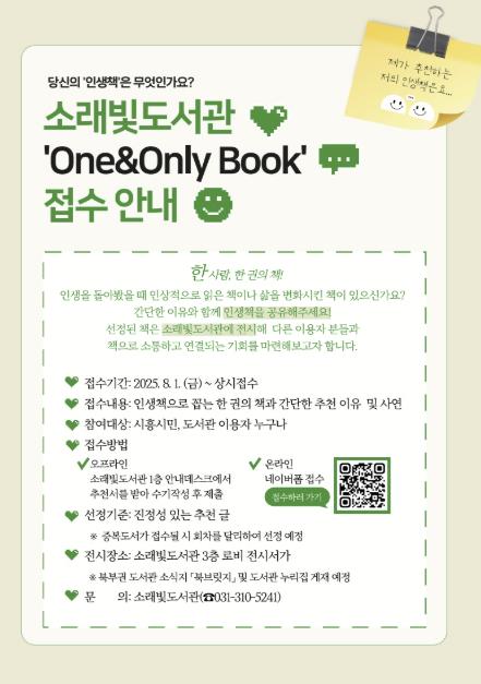 ‘One·Only Book’은 삶의 전환점이 됐거나 특별한 울림을 준 한 권의 책, 혹은 오랜 시간 기억에 남은 감동적인 책 등 각자의 인생에 깊은 인상을 남긴 책을 추천받는 시민 참여 프로젝트다.