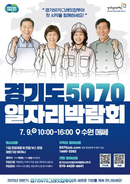 정두석 경기도 경제실장은 “1964년부터 1974년 사이 출생한 2차 베이비붐 세대가 지난해부터 60세에 진입하고 있다”며 “954만 명에 달하는 이 세대는 우리 사회에서 가장 큰 인구집단으로, 고용 안정과 재취업 지원이 매우 중요한 시점이다. 경기도는 5070 일자리 박람회를 통해 중장년의 고용환경을 실질적으로 개선해 나가겠다”고 말했다.