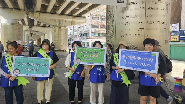 지난 6월 19일 창동역 역사 주변에서 올해 첫 캠페인이 진행됐다. 이날 캠페인에는 주민 300여 명이 참여했다. 참여자들은 현수막, 피켓, 어깨띠를 활용해 ‘금연거리 만들기’ 활동을 펼쳤다.