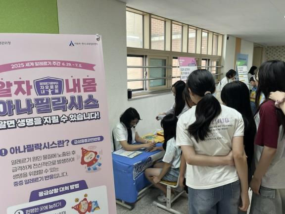 센터는 이번 캠페인을 어린이 눈높이에 맞춘 체험 중심의 홍보 부스로 운영했다. 주요 프로그램은 ▲아나필락시스 응급약물 사용법 실습 및 교육 ▲경피수분측정기를 활용한 피부 수분 측정 ▲‘알레르기 하우스’ 저금통 만들기 ▲OX 퀴즈를 통한 알레르기 바로알기 체험 ▲용인특례시 마스코트 ‘조아용’을 활용한 포토존 등으로 이뤄졌다.