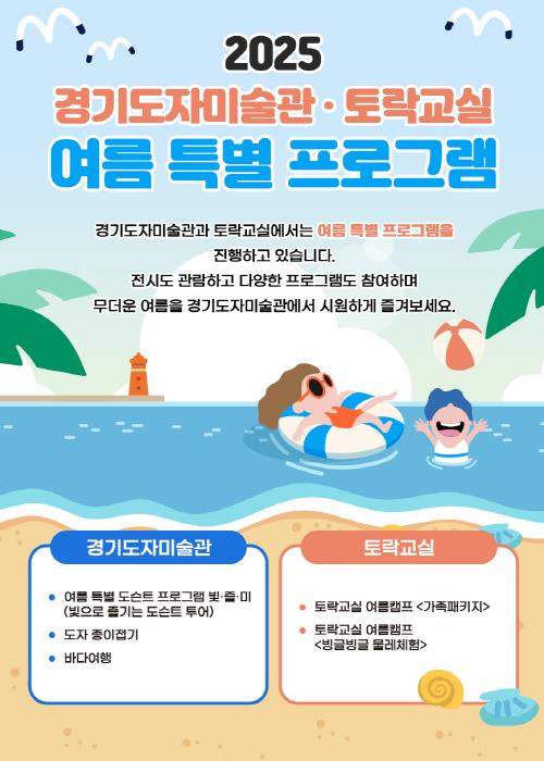 ‘바다여행’은 물고기, 조개 등 해양 생물을 형상화한 도자기 마그넷을 제작하는 프로그램이다. 8월 3일, 9일, 24일, 31일 오후 2시 30분에 경기도자미술관 2층 교육 공간에서 총 4회 운영된다. 연령 제한 없이 누구나 참여할 수 있다.