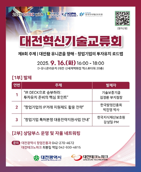 자세한 사항은 대전테크노파크 기술사업화팀으로 문의하면 된다.