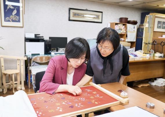 이수희 강동구청장은 자수장 공방을 둘러보며 김 장인의 활동들을 직접 듣고, 국가무형유산의 의미와 그 계승의 가치를 되새겼다. 아울러, 전시작품을 감상한 뒤 평소 접하기 어려운 전통 자수 시연에도 직접 참여하며 장인정신을 체험했다.