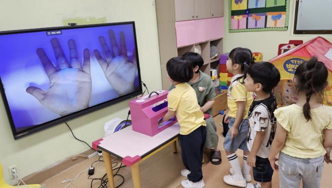 첫 번째, ‘찾아가는 손 씻기 체험교육’은 손 씻기 전·후를 비교할 수 있는 ‘뷰박스’를 활용해 형광로션 체험을 진행하고 감염병 예방에 효과적인 손 씻기 수칙을 실습을 통해 습득하도록 했다.