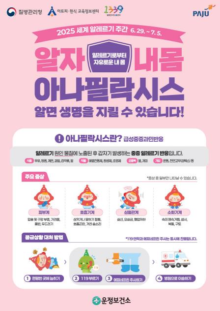 정영숙 운정보건소장은 “최근 식품, 약물, 곤충 등에 의한 아나필락시스 발생이 증가하고 있지만, 많은 시민들이 그 위험성과 대처 방법을 잘 알지 못하는 상황”이라며, “이번 홍보 주간을 계기로 시민 여러분이 아나필락시스에 대해 정확히 이해하고, 위급한 상황에서도 신속하고 적절하게 대응할 수 있는 계기가 되길 바란다”라고 전했다.