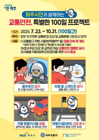 파주시는 이번 100일 프로젝트에 그치지 않고, 지속적인 캠페인과 홍보활동을 통해 시민들의 교통안전 의식을 높이고, 자발적인 교통문화 실천을 유도할 계획이다.