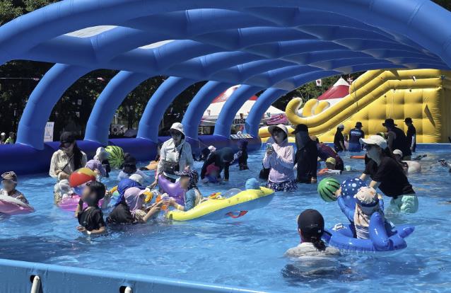 물놀이장 내부에는 아이들을 위한 ▲조립식 풀장 ▲분수 터널 ▲워터슬라이드 등의 놀이시설이 설치됐다.