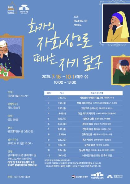 광교홍재도서관 관계자는 “예술가의 자화상을 통해 시대와 사회, 인간 내면을 사유할 소중한 기회가 될 것”이라며 “많은 분이 참여해 일상에서 인문학의 울림을 경험하길 바란다”고 말했다.