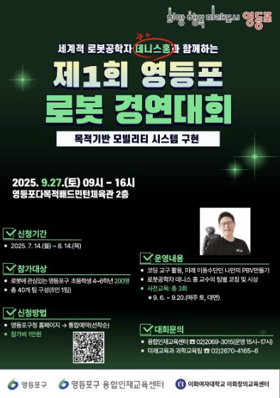 대회 당일에는 세계적인 로봇공학자 데니스 홍 UCLA 교수의 팀별 코칭이 더해져 학생들이 전문적인 지도를 받을 수 있는 특별한 기회가 주어진다.