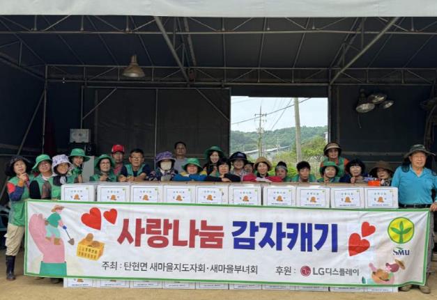 감자 수확을 위해 오전 6시부터 탄현면 새마을회, 이장협의회 및 주민자치회 30여 명이 참여해 구슬땀을 흘렸으며, 지난 3월에 파종한 감자 200상자를 수확했다.